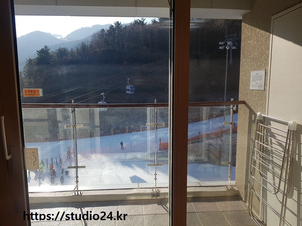 힐콘도에서 슬로프를 볼 수 있는 방은 추가금액이 발생합니다.