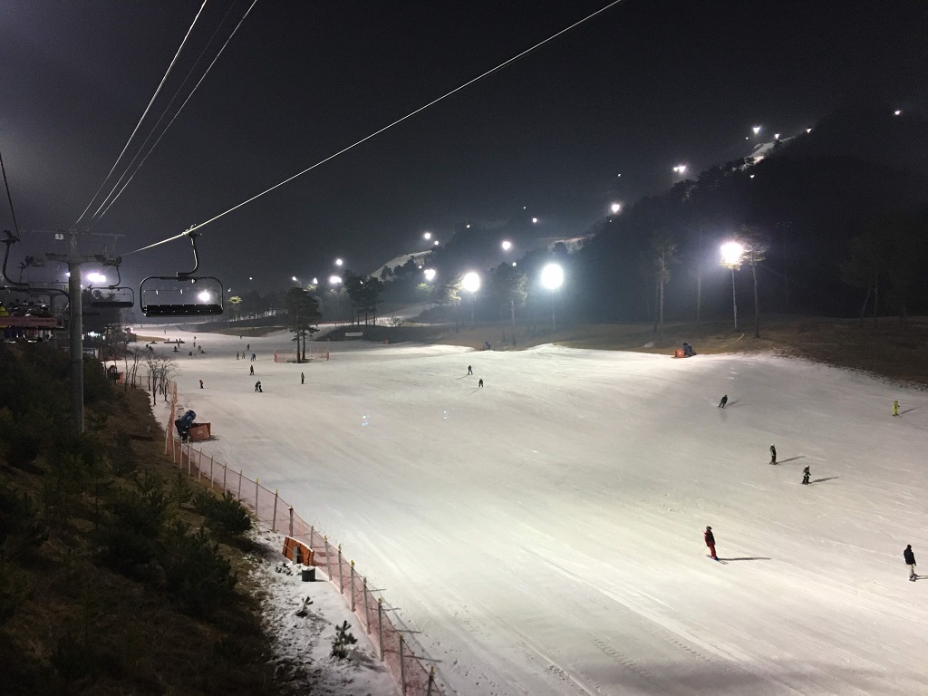 금요일 야간, 리프트를 타고 올라갑니다.