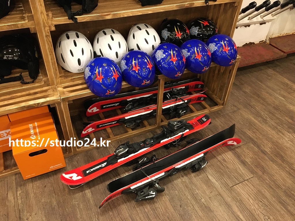 예전에는 보드를 탔지만, 스키를 다시 배우고 있어 스키장비를 렌털 하러 갔습니다.