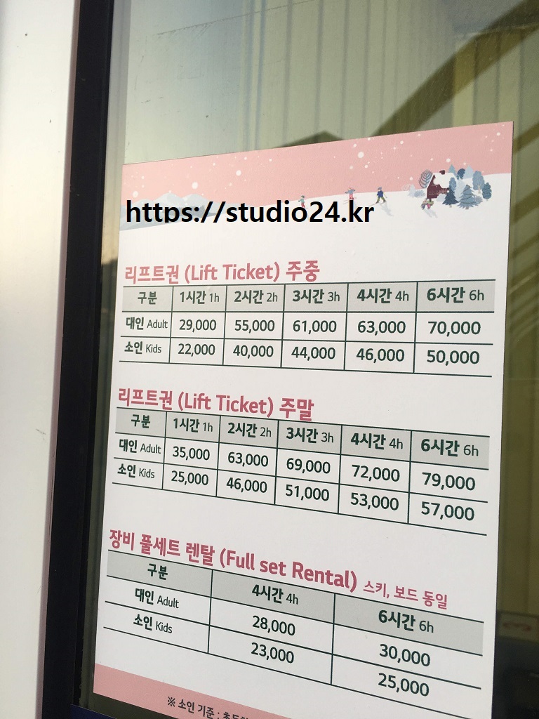 주말 4시간을 타려면 스키 랜탈 1만원 포함 82,000원이 들어가니 상당히 비싼 스키장입니다.