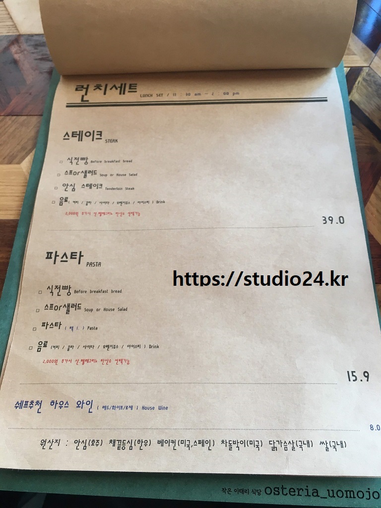 오스테리아 워모잡 메뉴에서 2인 세트, 4인 세트 메뉴를 보았으나, 저녁에 한정된 메뉴라고 합니다.