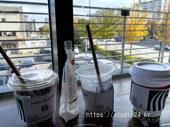 좋은 기분을 가지고 스타벅스에도 가고 1석 2조를 하고 왔어요.