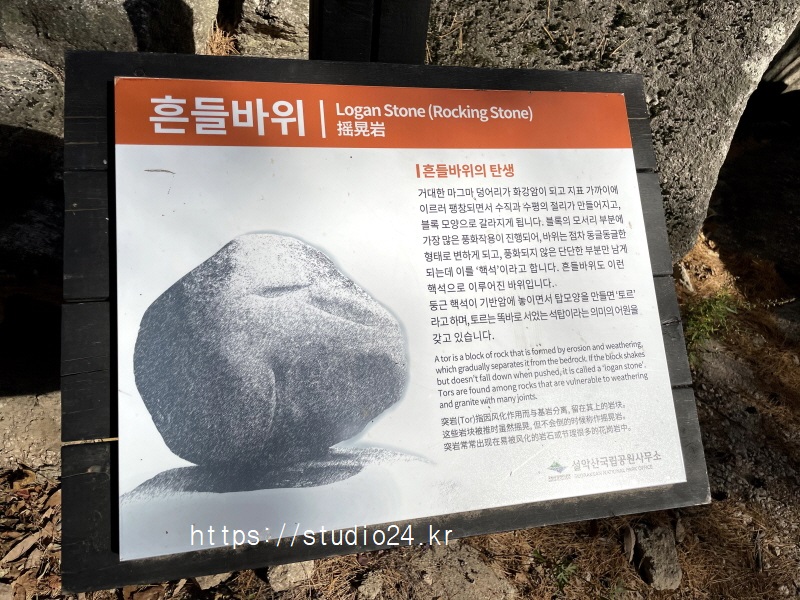 흔들바위로 가는 입구는 임시 변경되었습니다.