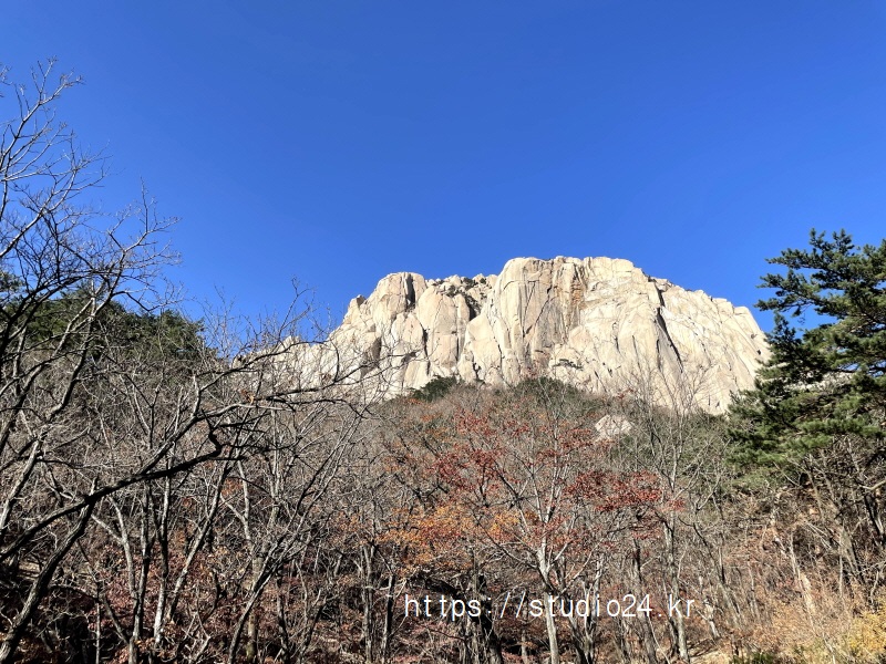 한 시간가량 걸어 올라가면 울산바위가 가까이 보입니다.