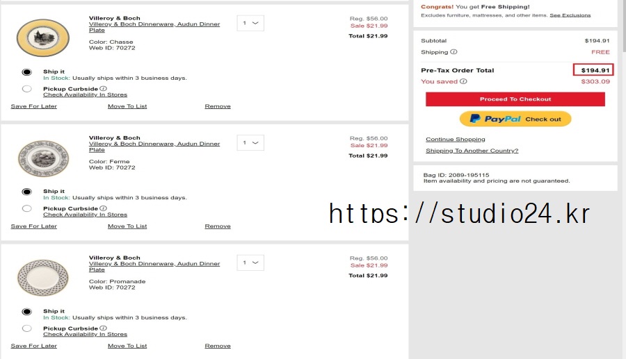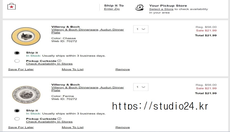 펌 평 접시의 경우 67,900원, 79,800원이지만 직구의 경우 21.99 달러!