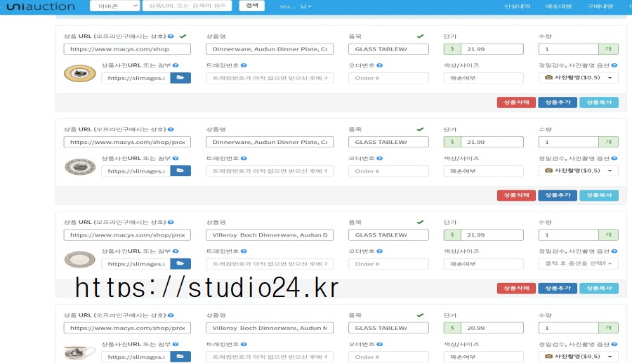 배대지에 상품을 하나씩 모두 다 입력해 줍니다.