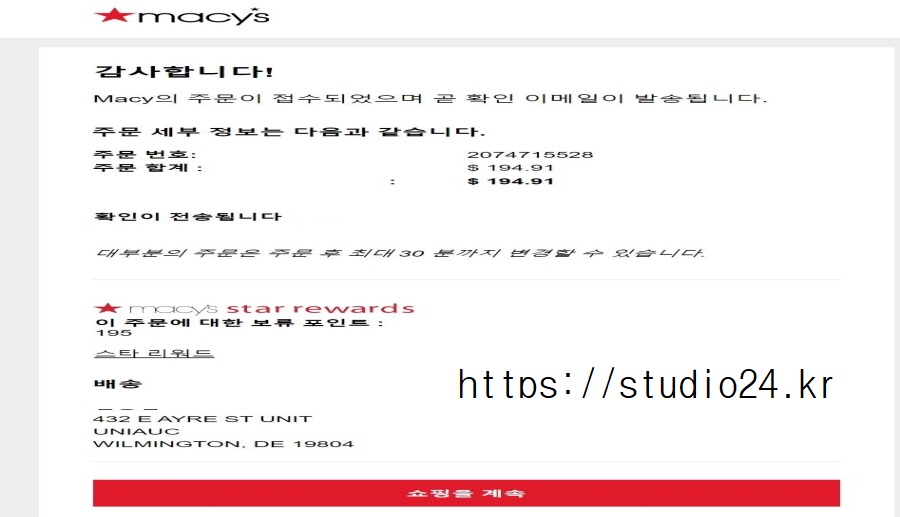 배대지 주소 확인하고, 최종 결제!