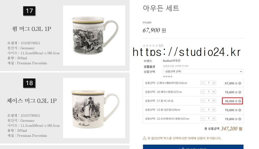아우든 세트, 펌 머그잔의 경우 국내 39,900원 직구 $20.99