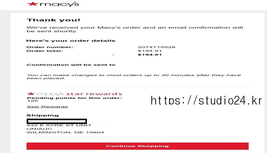 194.91달러 확인 후 결제를 진행합니다.