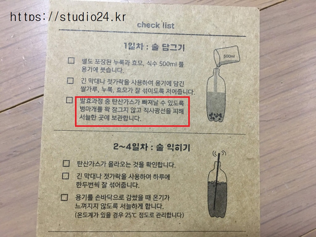 혹, 집에서 막걸리를 만드신다면 꼭 병뚜껑 조금은 열어두세요~