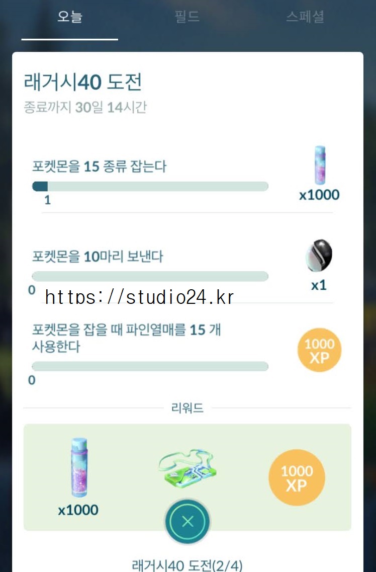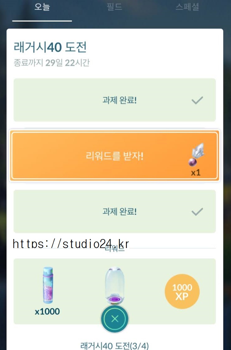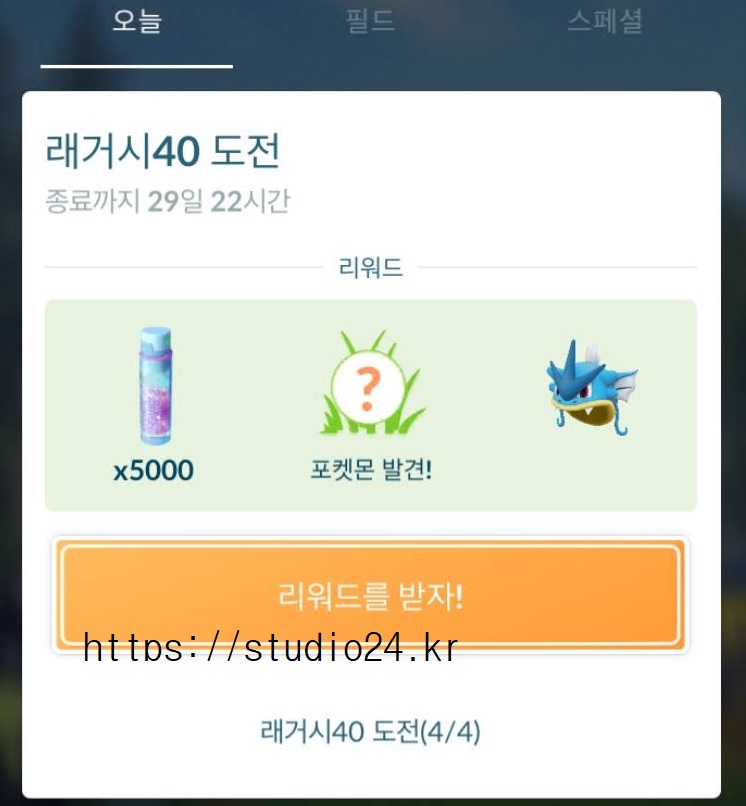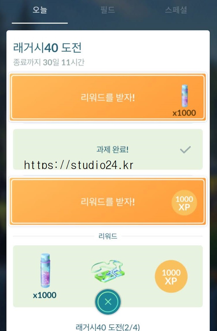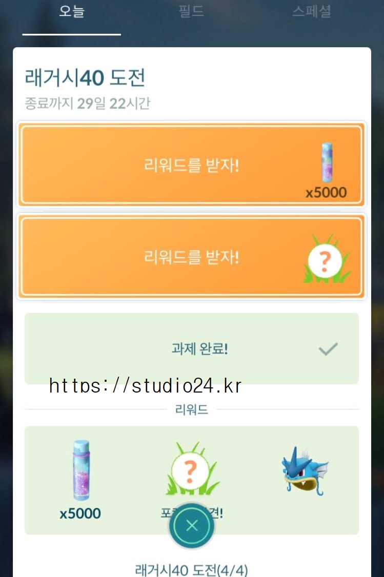 래거시 40 도전 미션 완료 보상 포켓몬은 바로!