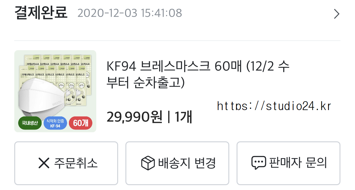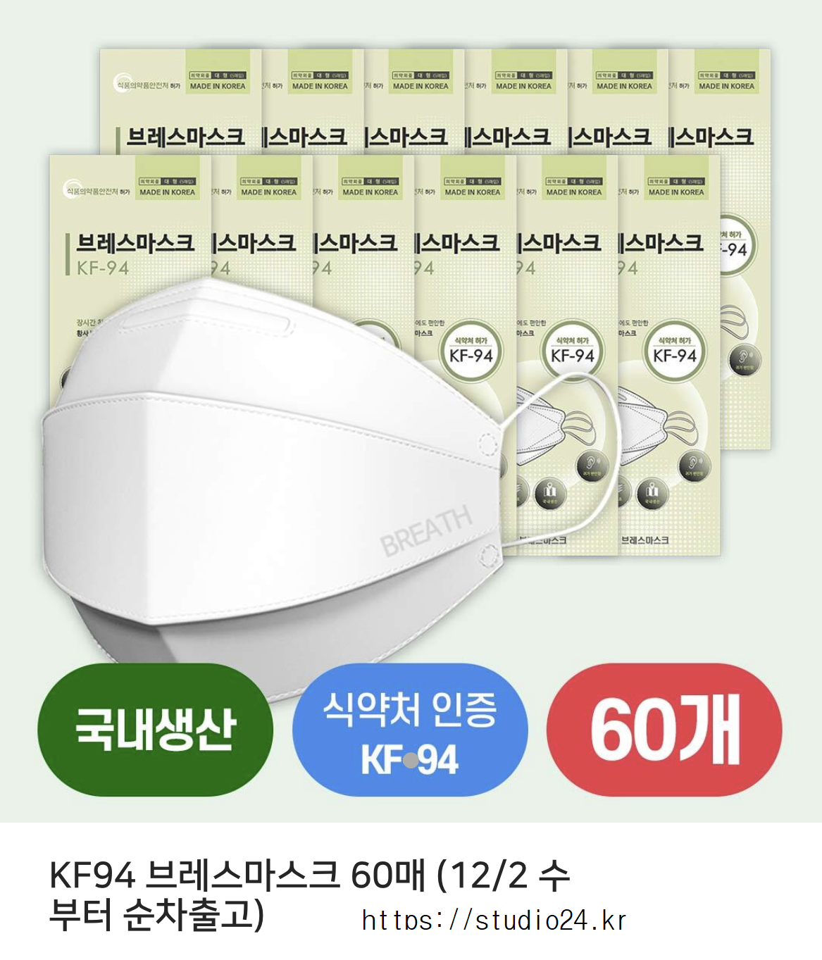 KF94 브레스마스크 60매를 9990원에 구입했습니다.
