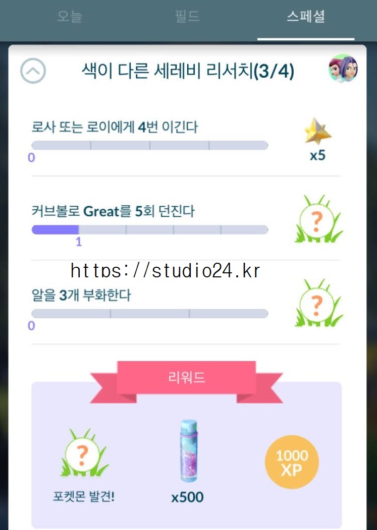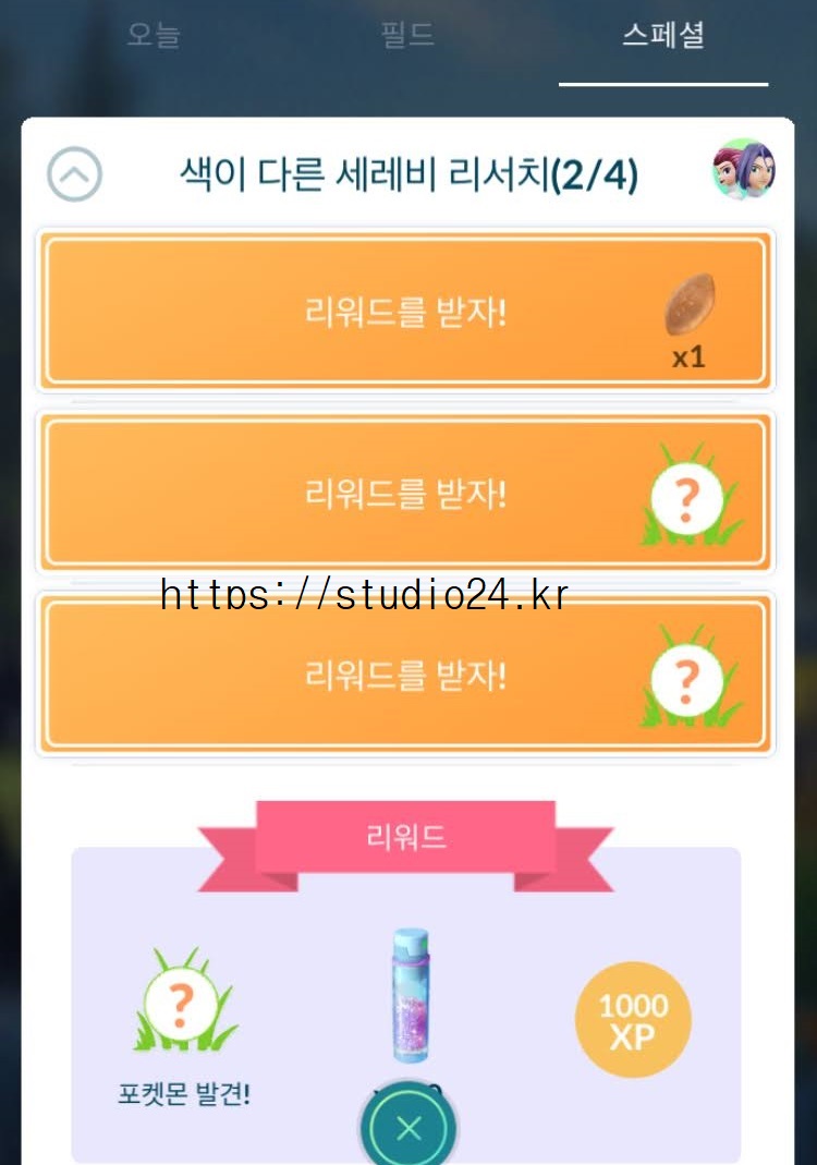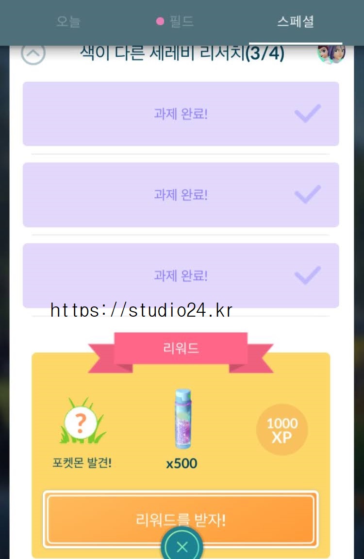 포켓몬고 색이 다른 세레비 리서치를 완료했습니다.