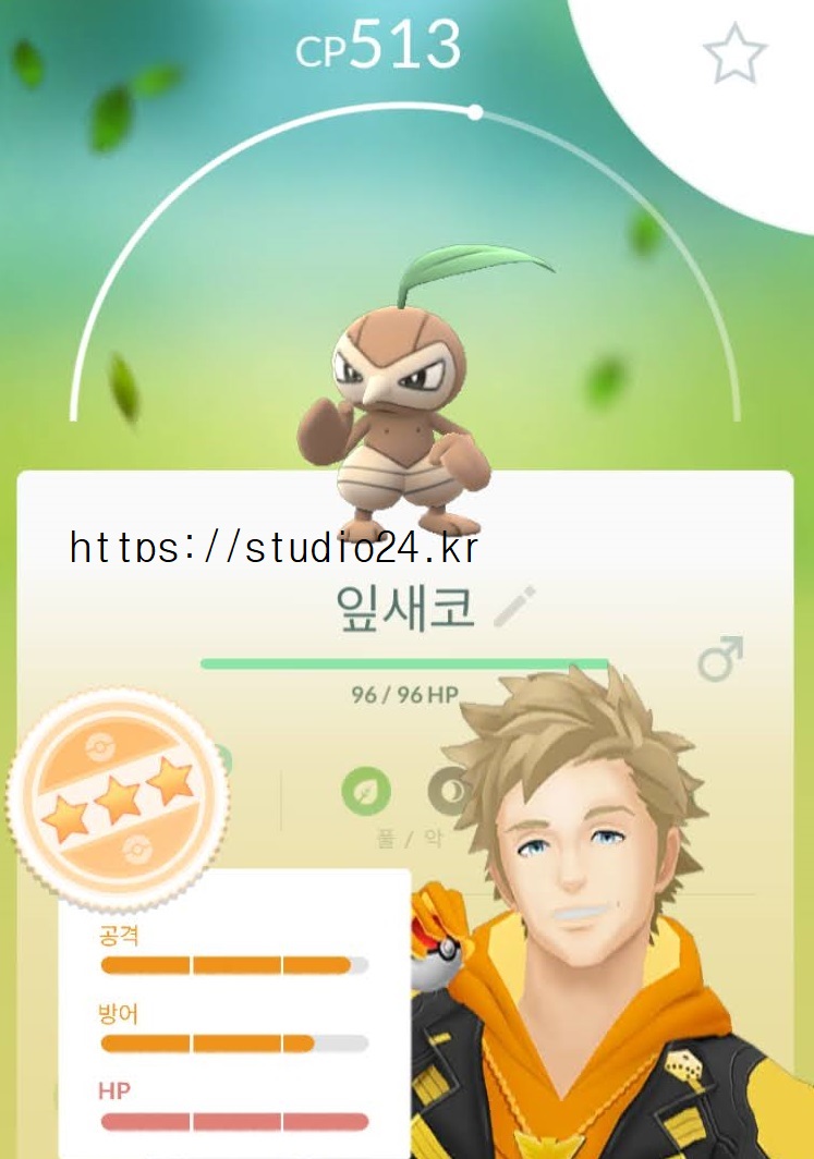 풀타입 포켓몬을 10마리 잡는다 : 잎새코