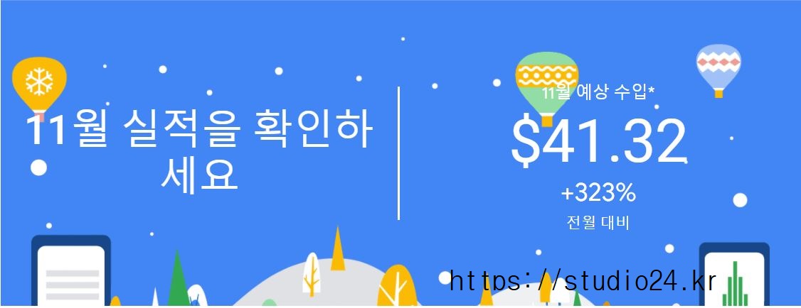 구글 애드센스 11월 보고서가 도착했습니다.