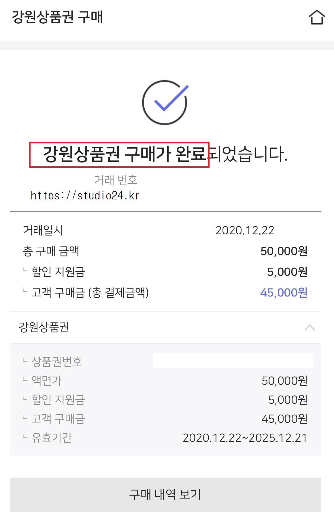 강원 상품권의 경우 유효 기간은 5년으로 넉넉합니다.