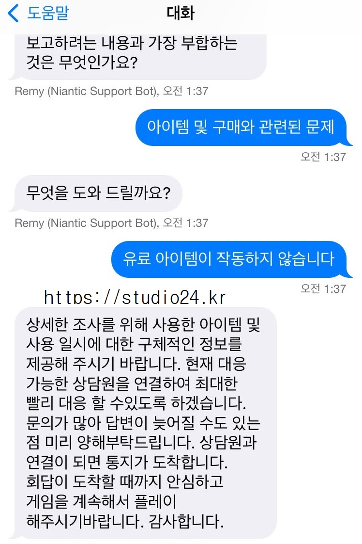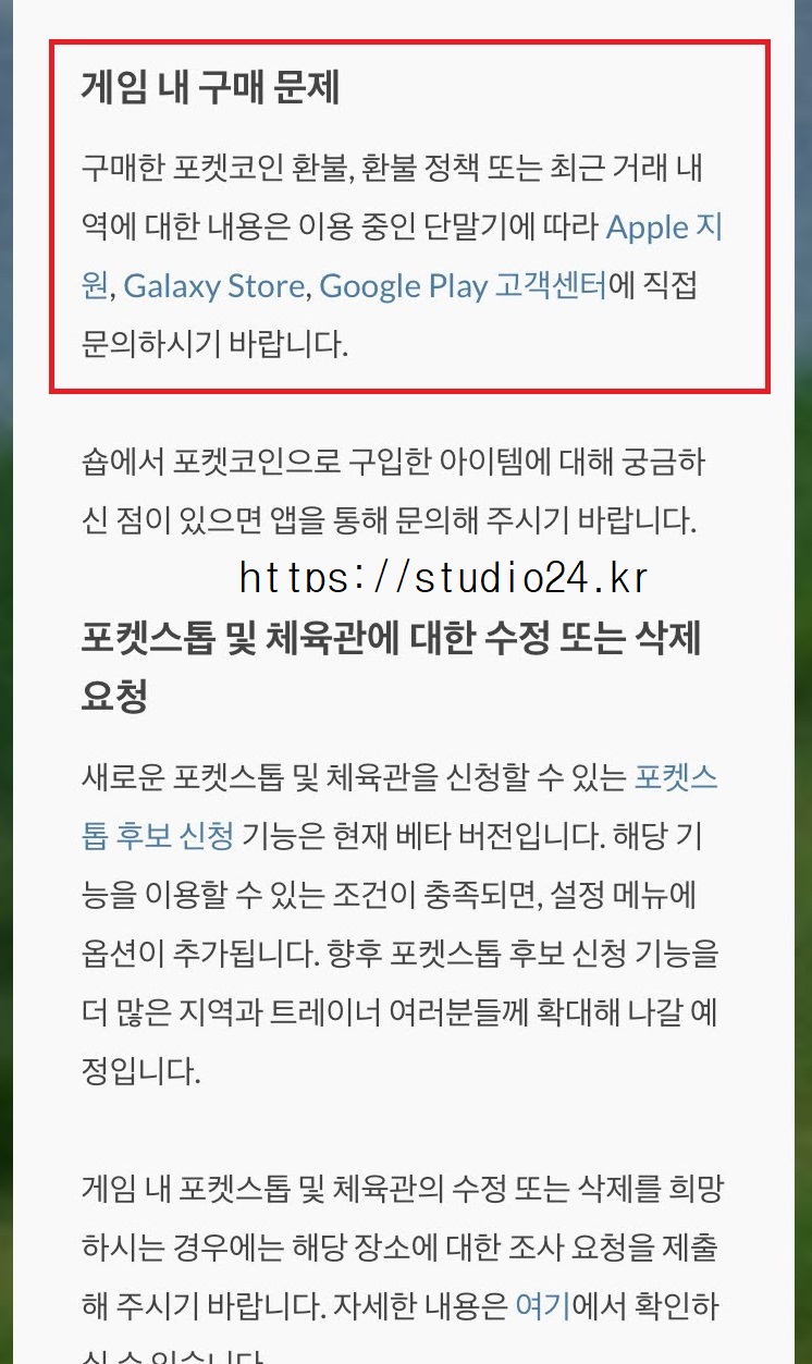 포켓몬고 게임 내 설정 -> 헬프 보기 -> 문의하기