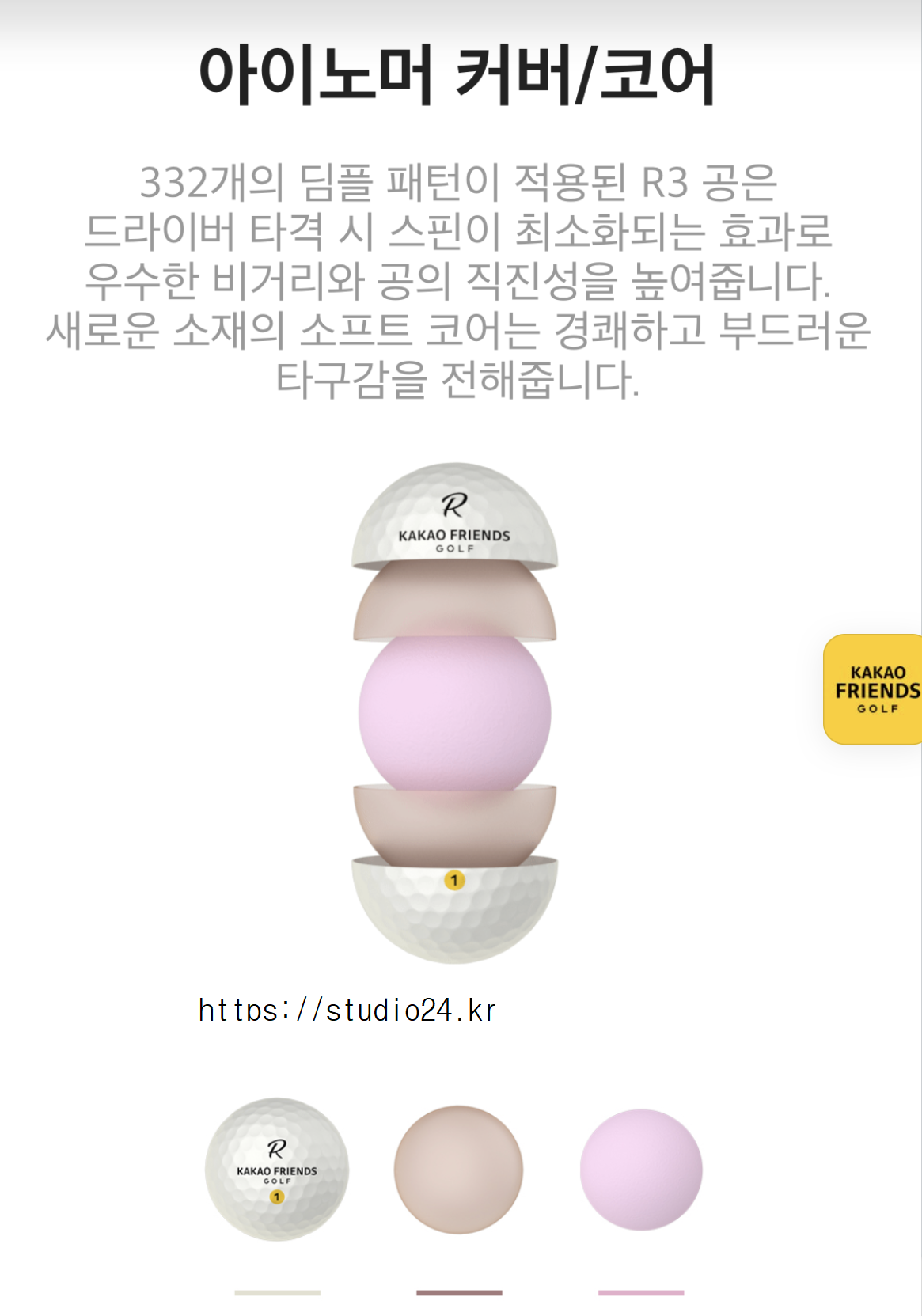 카카오 R3 골프공은 비거리 극대화, 그리고 카카오에서 설계해서 만들어진 골프공이라 합니다.