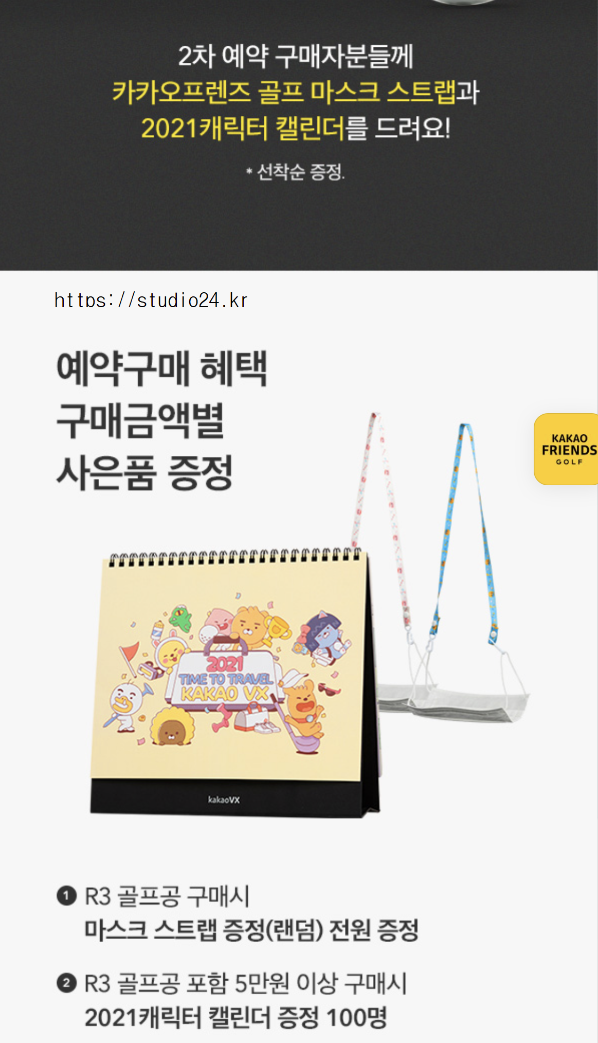 선물은 골프 마스크 스트랩과 2021년 캐릭터 캘린더