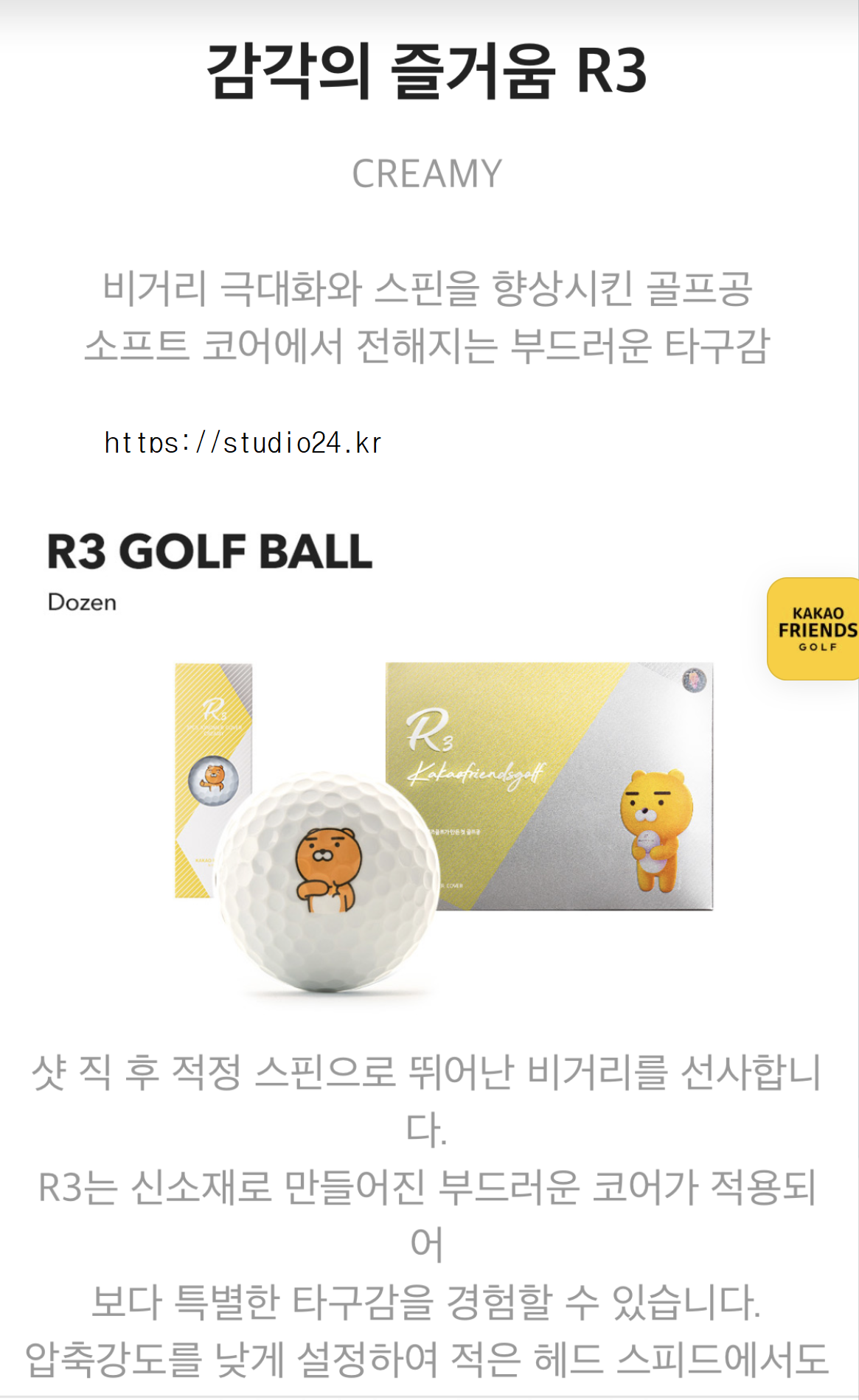 카카오 R3 골프공은 비거리 극대화, 그리고 카카오에서 설계해서 만들어진 골프공이라 합니다.