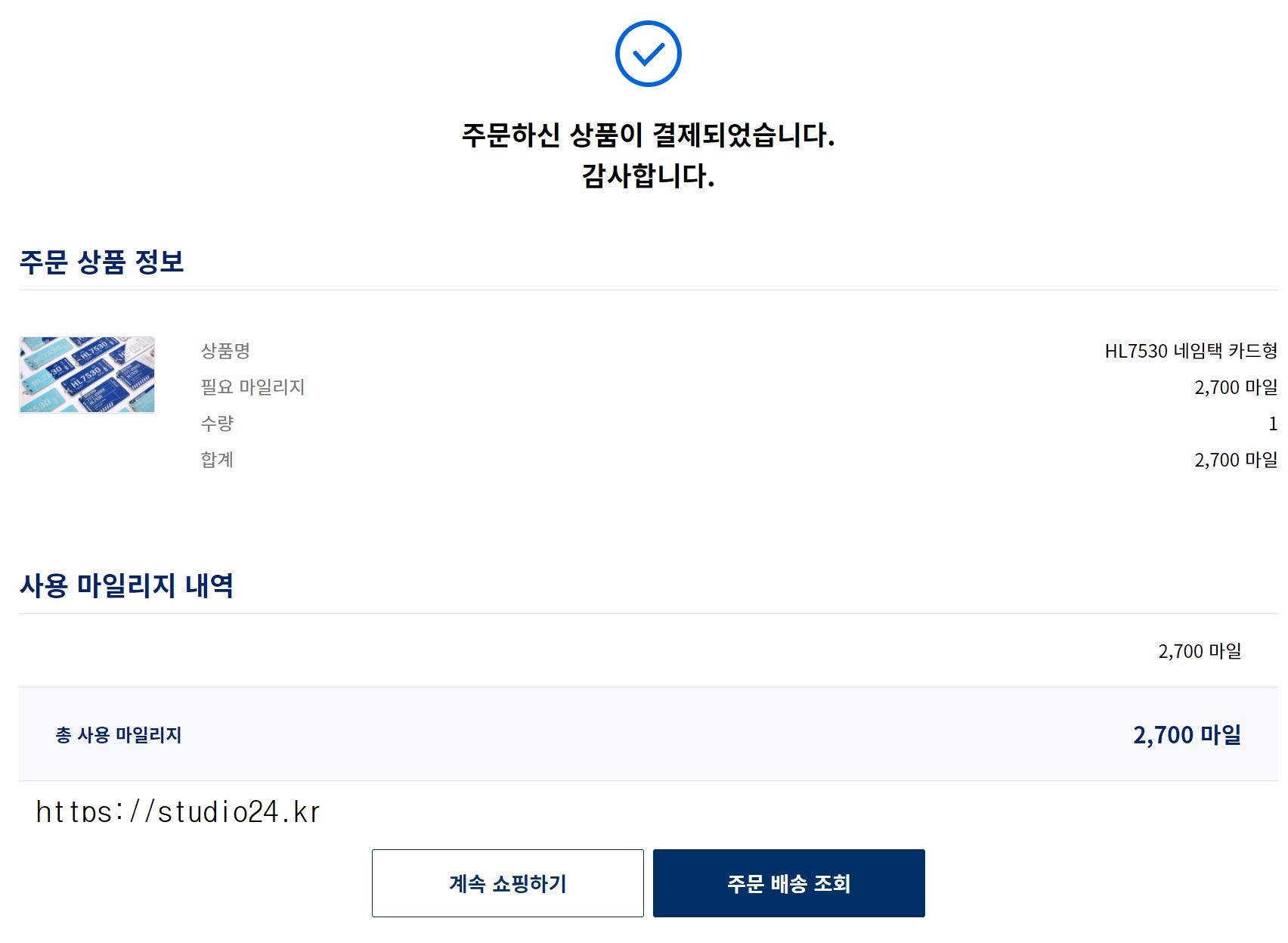 주문하신 상품 결제 완료!
