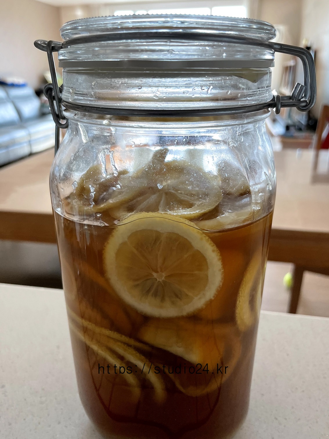 겨울철 우리나라에서 생산된 레몬으로 청을 만들었어요.