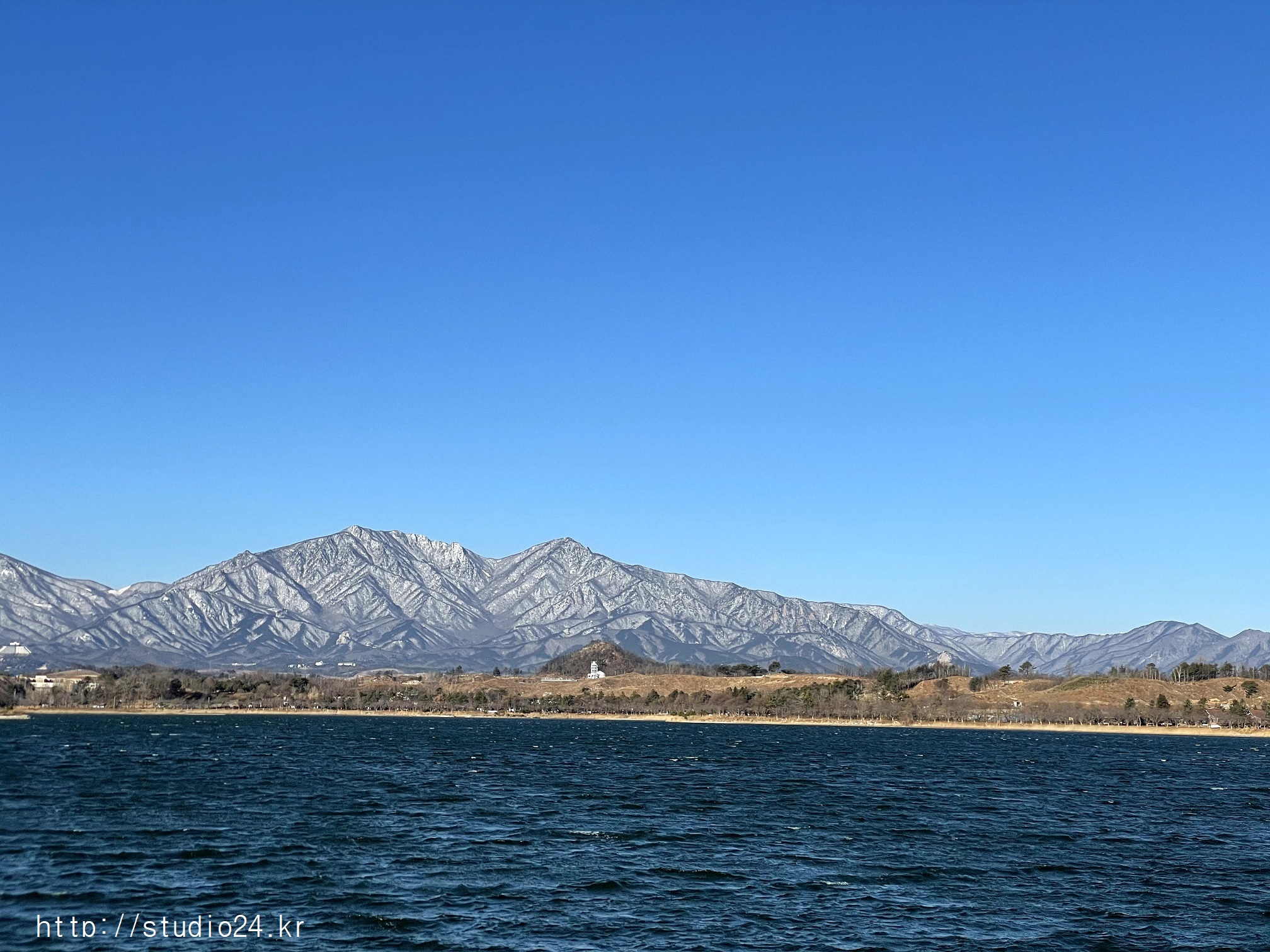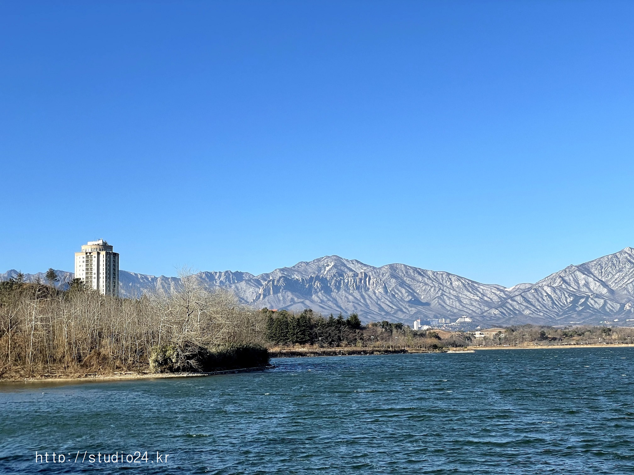 뒤에 보이는 설악산이 너무 맑게 보이고 있어요.