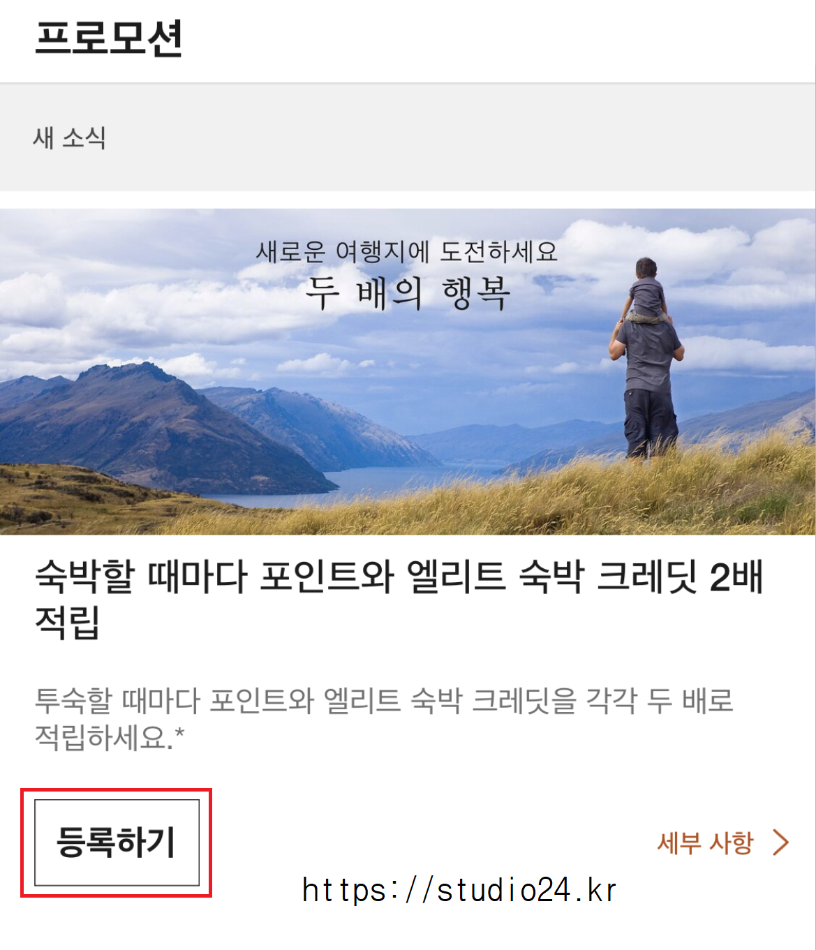 프로모션 내용 : 더블 포인트 + 더블 엘리트 나잇
