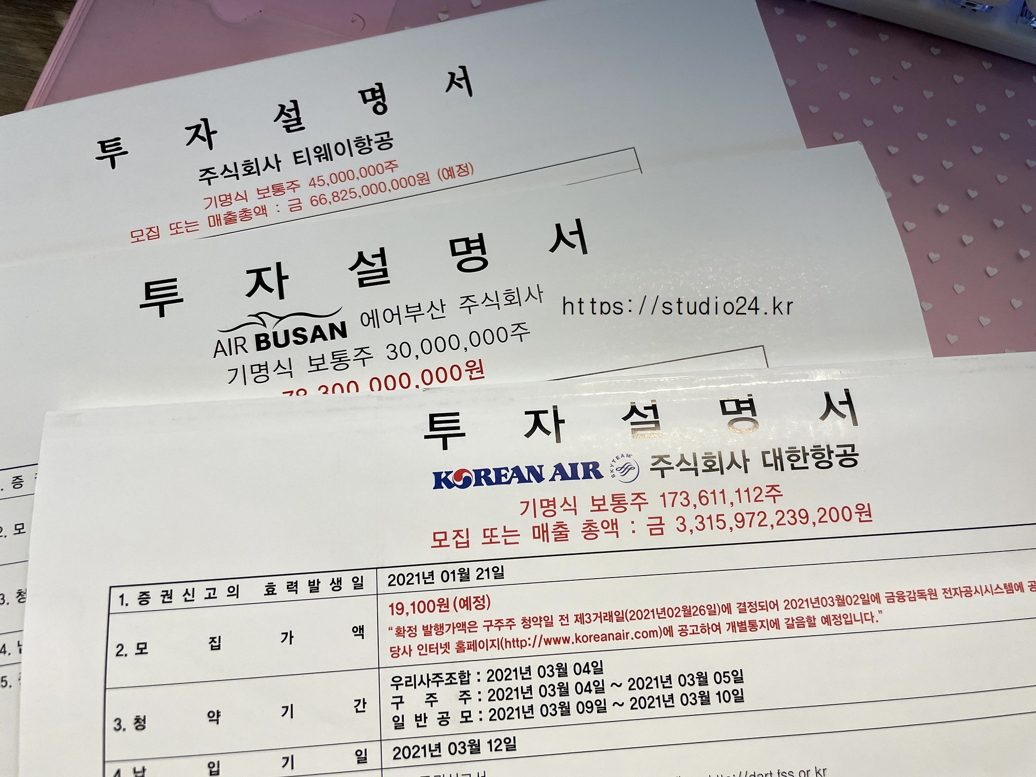 계속 유상 청약 투자 설명서를 받고 있습니다.