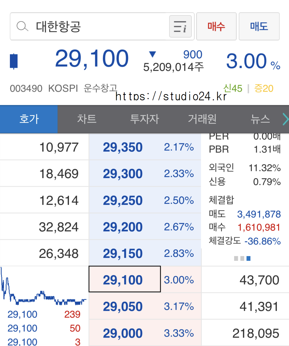 지금 대한항공이 29,100원