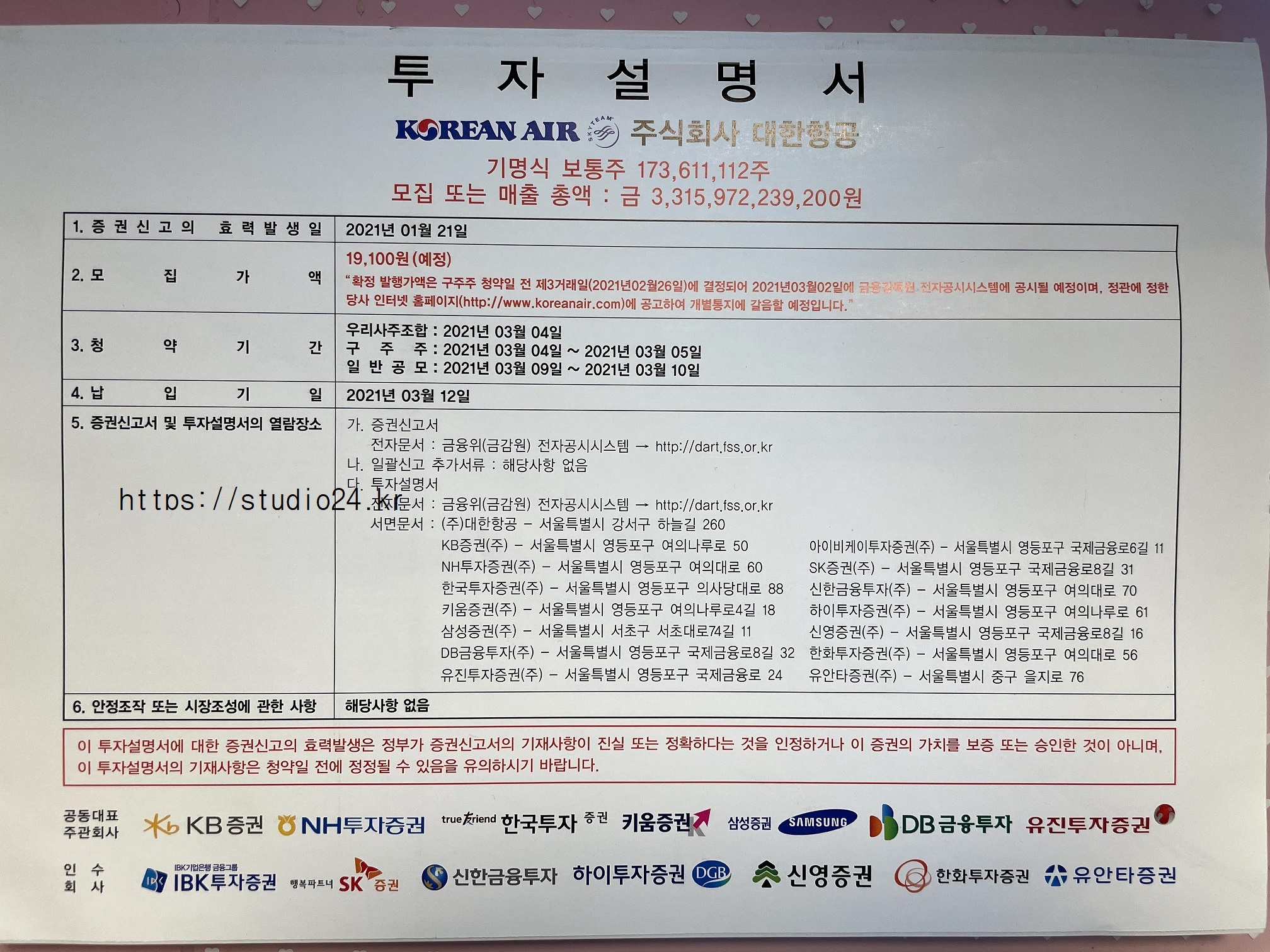 유상 청약 관련 투자 설명서
