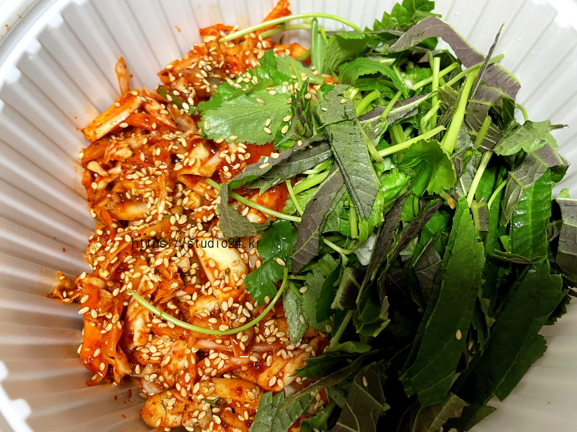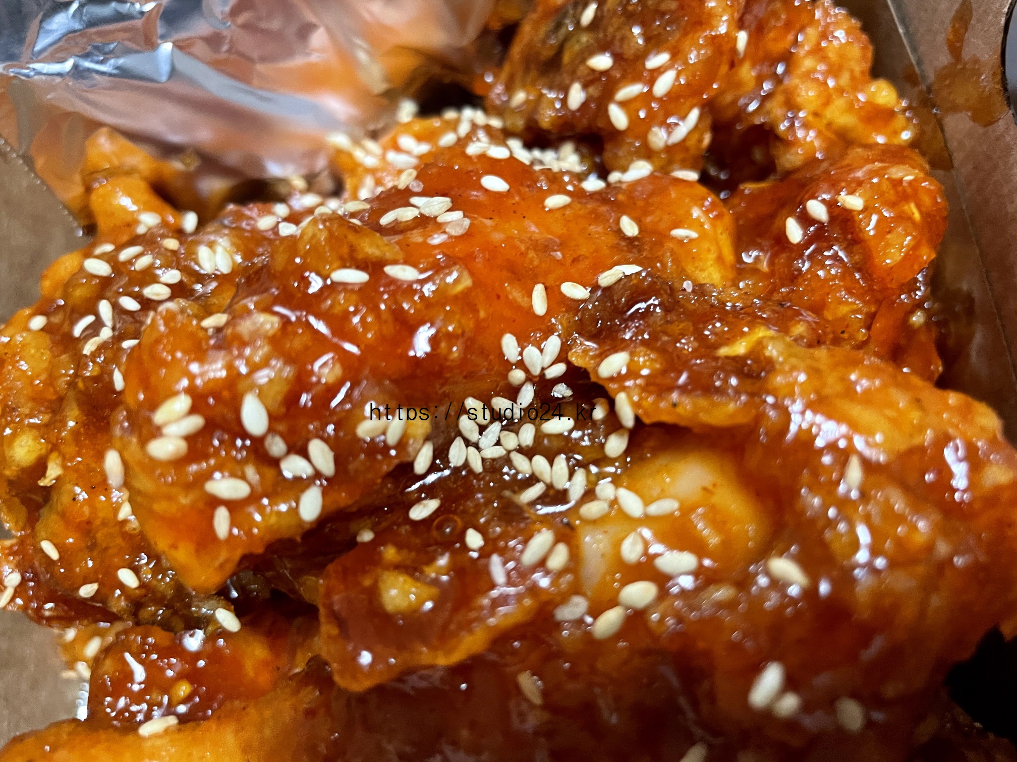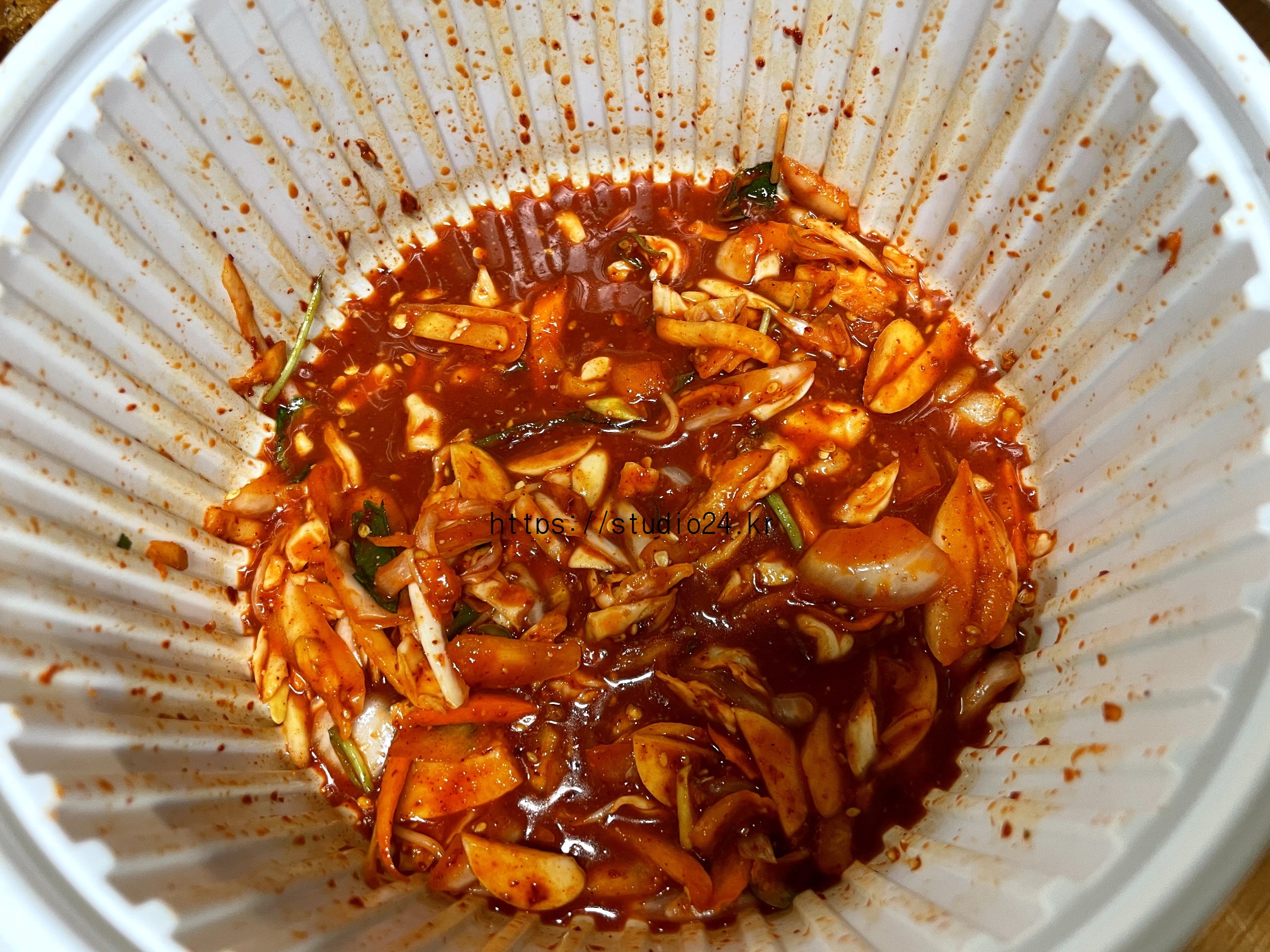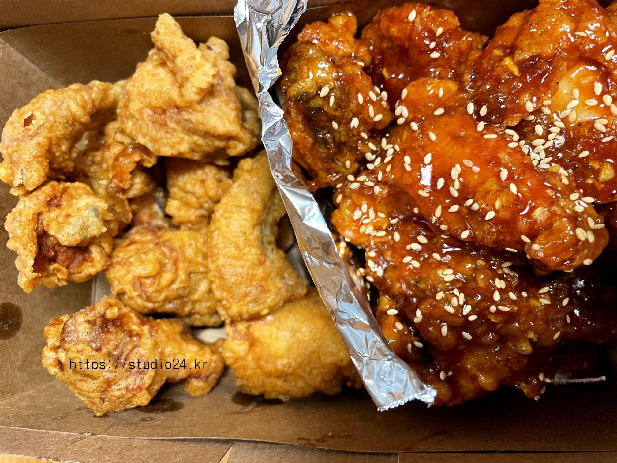 속초 페리카나 동명점에서 치킨과 생골뱅이 무침을 포장해서 먹었습니다.