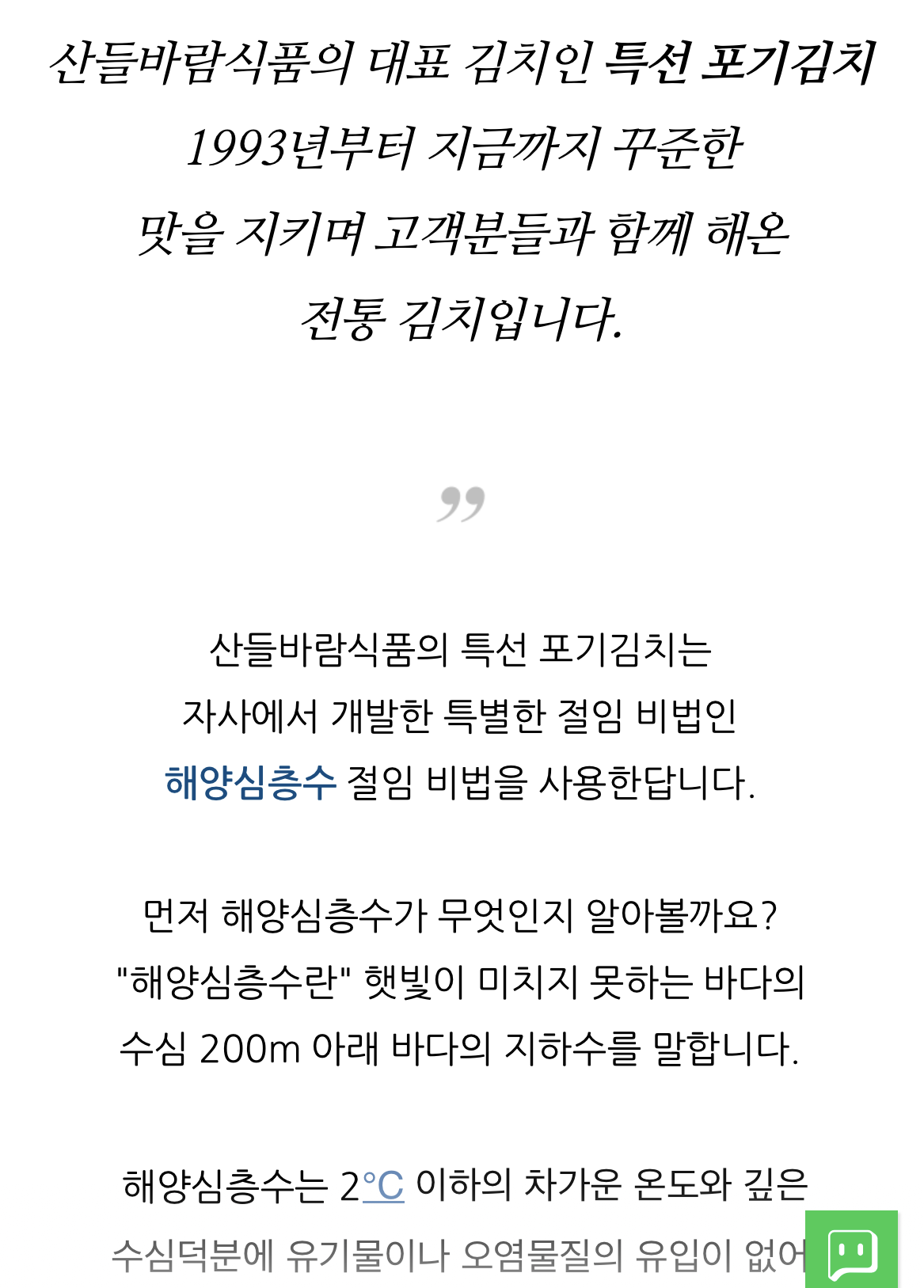 해양심층수로 절여서 건강한 김치를 먹을 수 있다고 합니다.