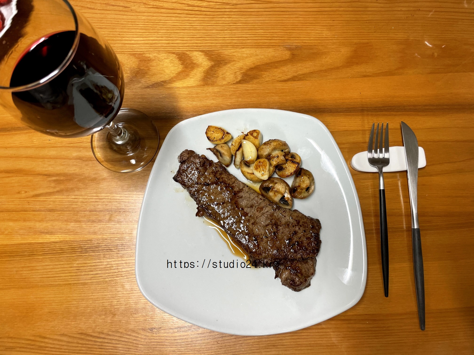 스테이크에 와인 한잔