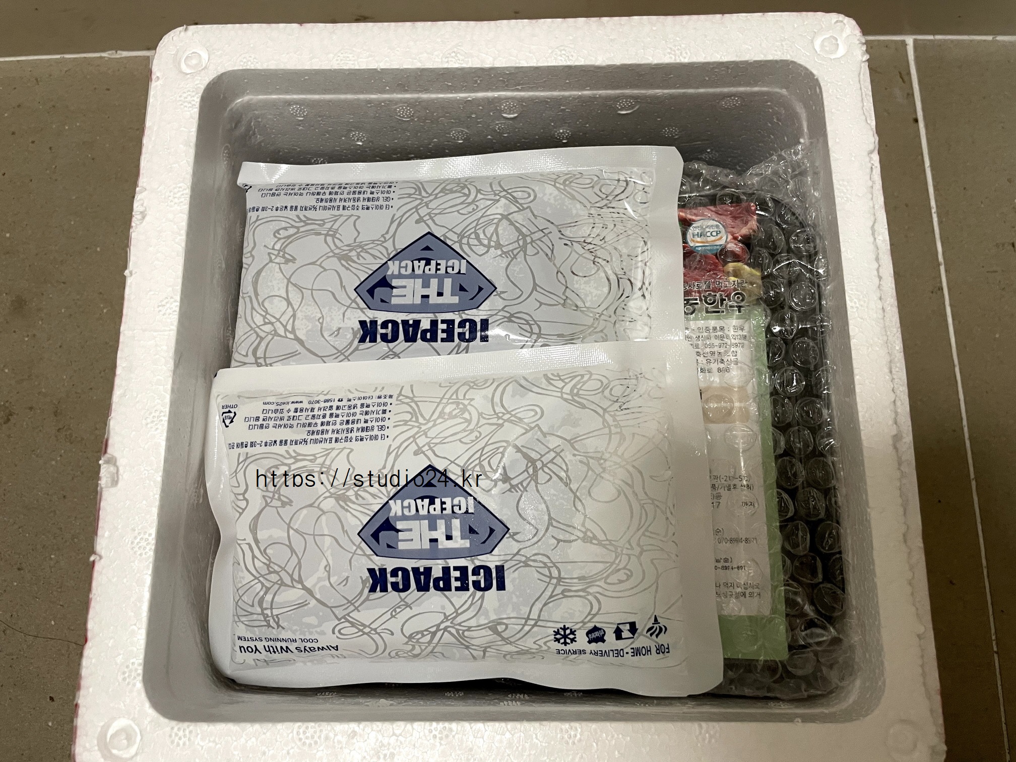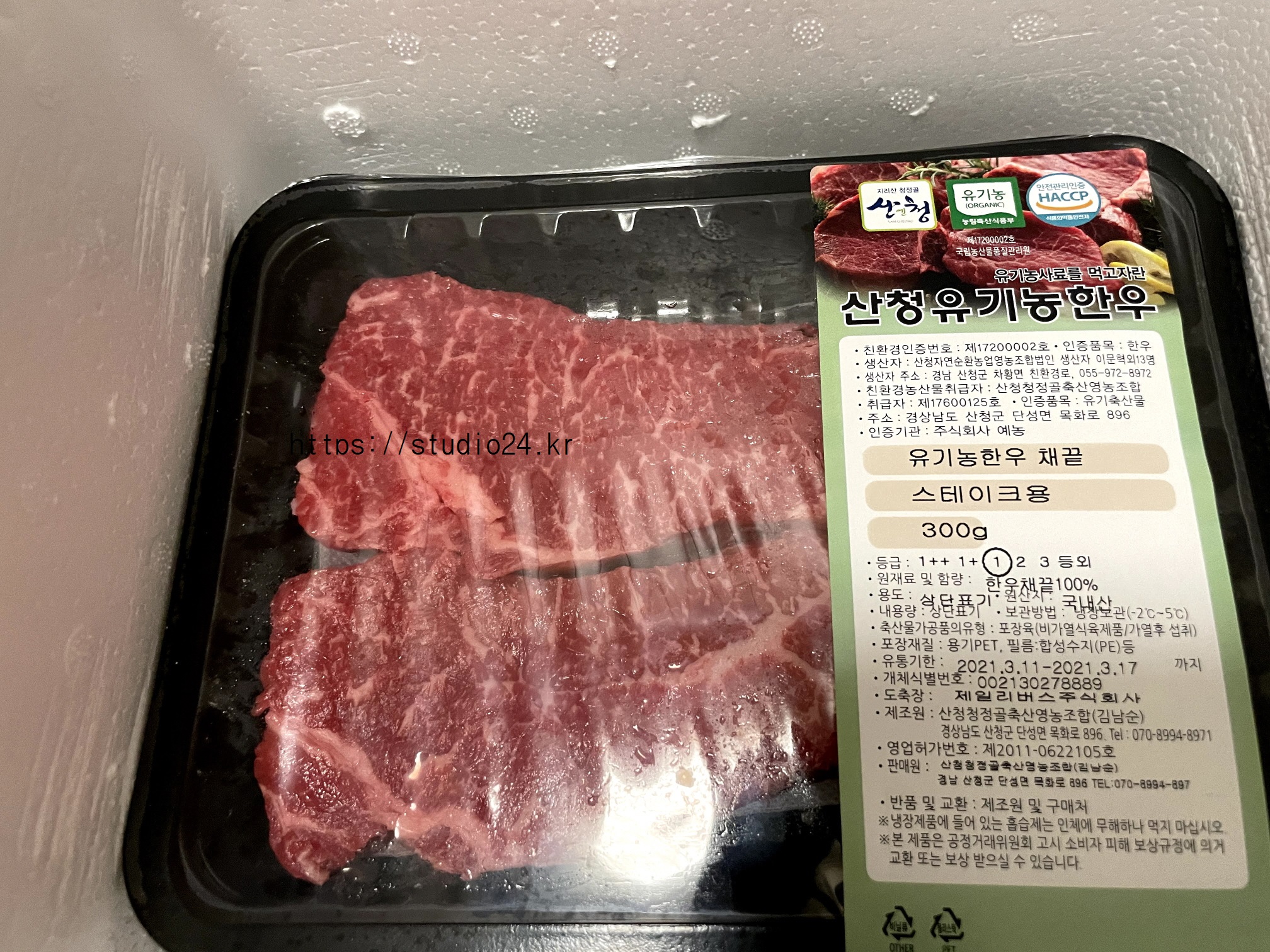미리 주문한 산청 유기농 한우는 아이스박스에 포장이 잘 되어 도착했습니다.