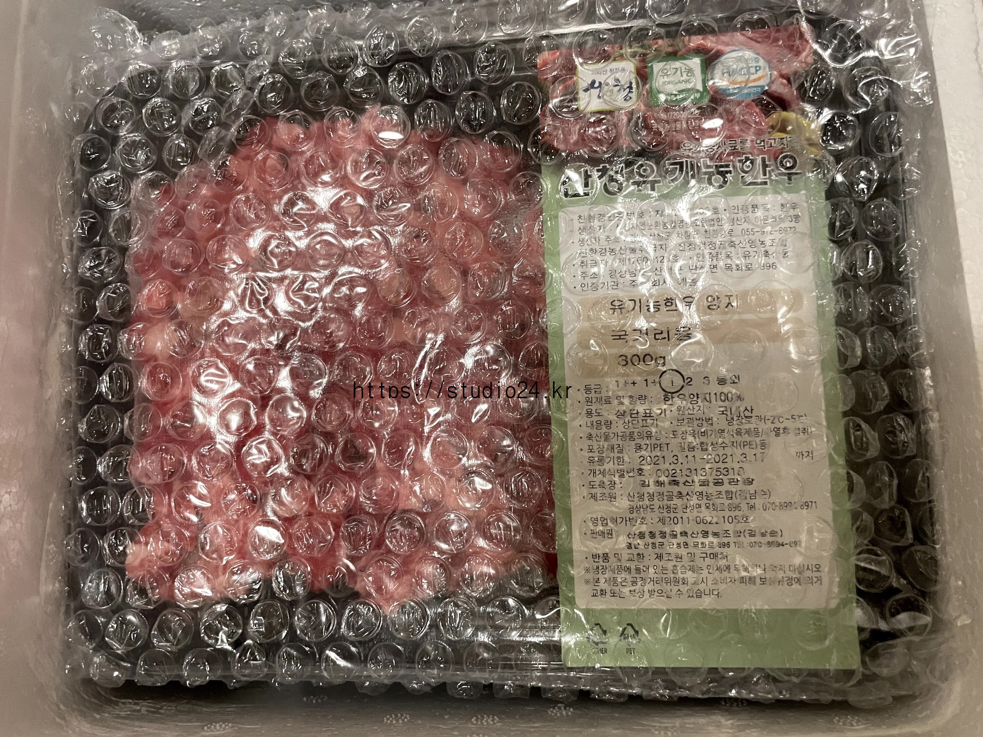 산청 유기농 한우를 미리 주문해서, 주말에 먹었어요.