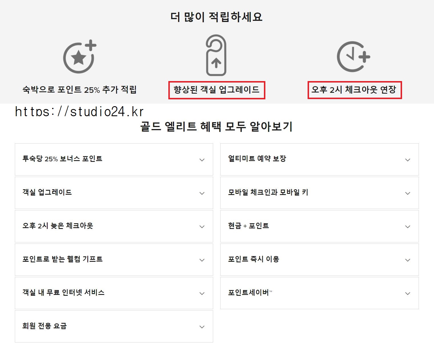 25% 추가 포인트 제공, 룸 업그레이드, 오후 2시 늦은 체크아웃