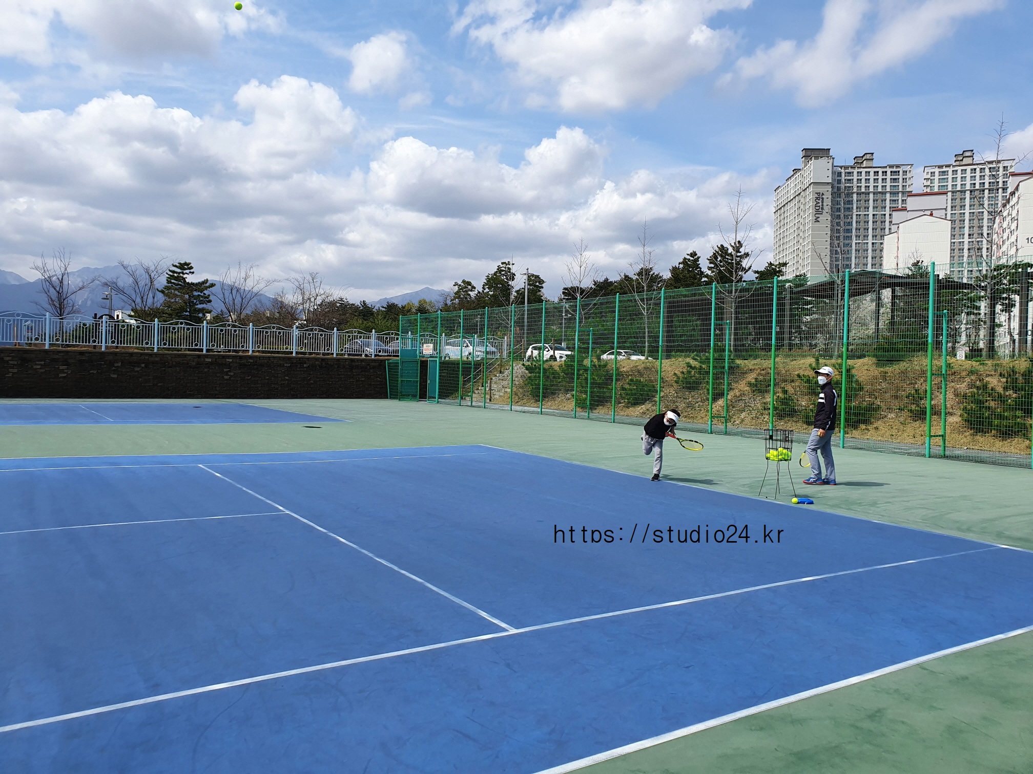 모든 장비를 챙겨서 테니스 코드로 출동!
