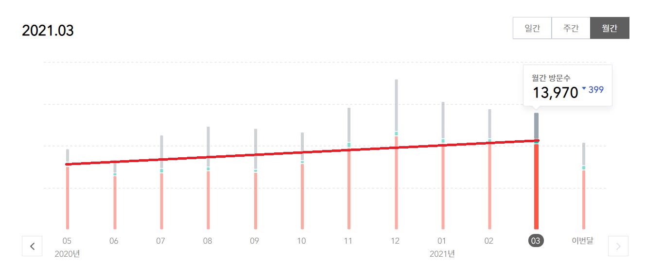 포털 검색이 전월보다 급격하게 감소되는 경우 저품질 블로그가 되었을 가능성이 높습니다.