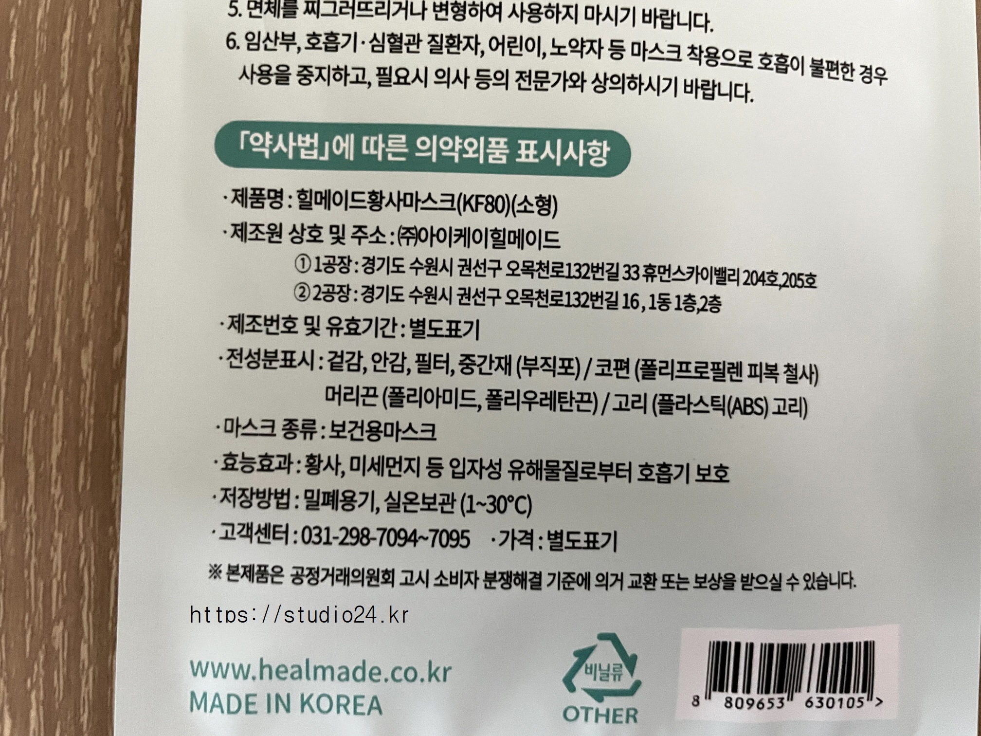 기존에 구입했던 힐메이드 황사마스크 KF80도 추가 구입을 했습니다.