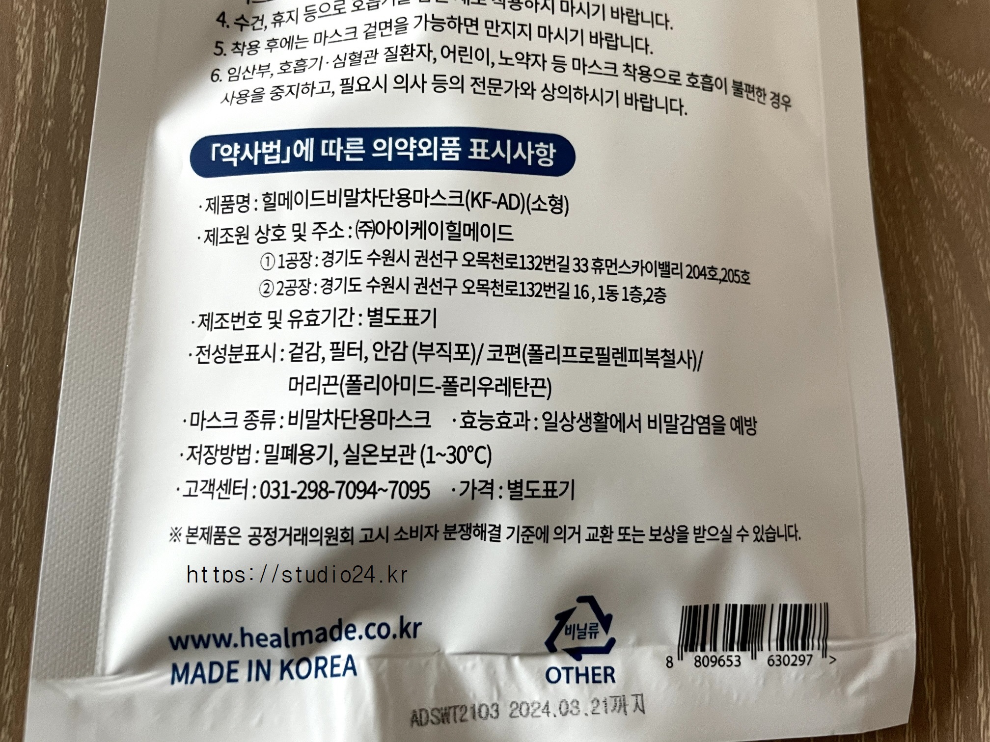 기존에 구입했던 힐메이드 황사마스크 KF80도 추가 구입을 했습니다.