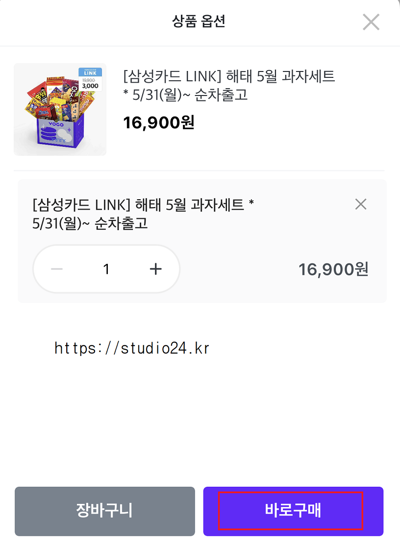 간식, 삼성카드 link 해태 5월 과자 세트 3천원 구입 찬스