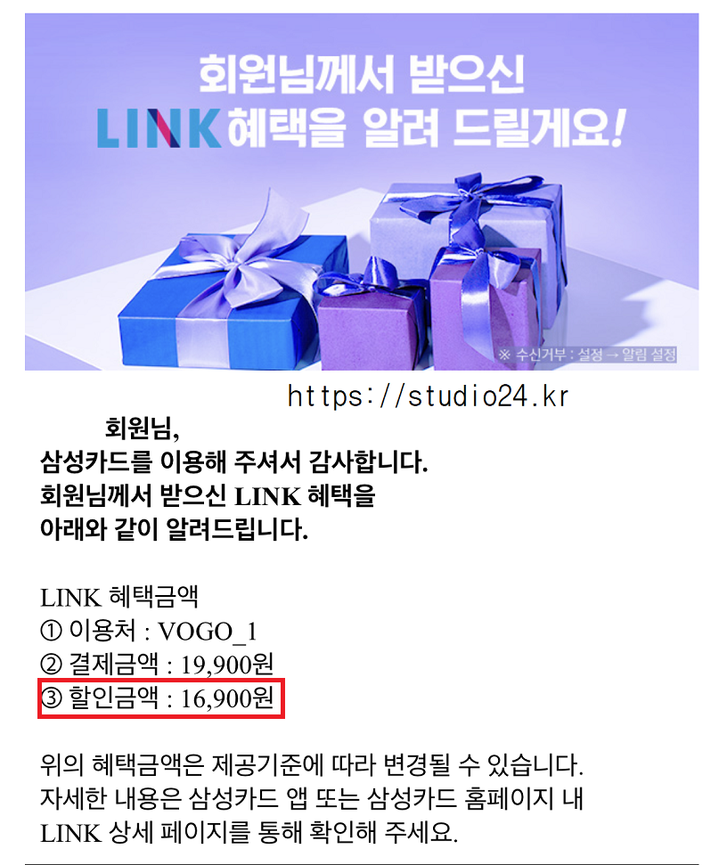 구입 후 LINK 혜택 알림이 도착했습니다.