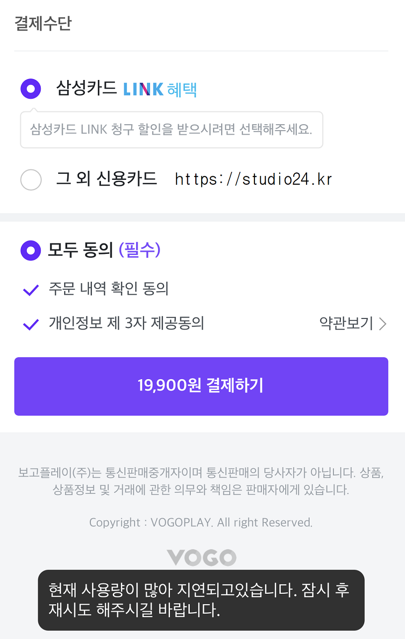 VOGO 사이트 폭주로 어플이 계속 종료되고, 다시 결제하는 문구가 나왔어요.