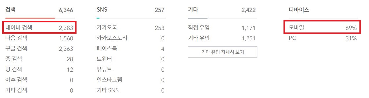 검색 유입은 두 달 연속 네이버 검색이 높았습니다.