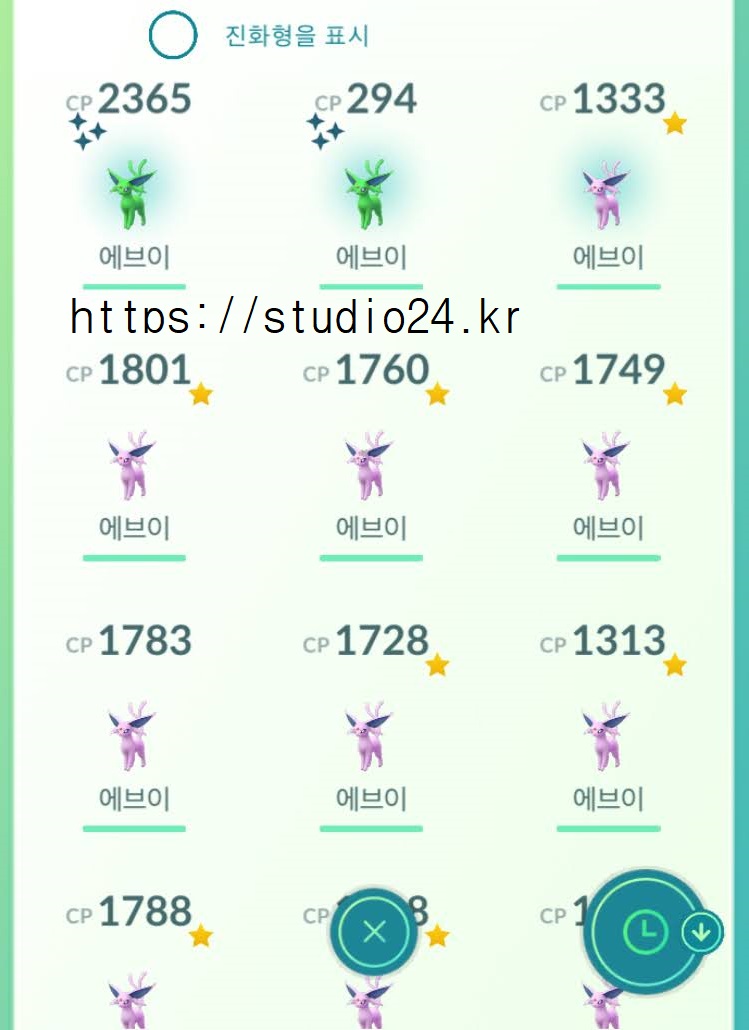 이제 색이다른 이브이를 진화해 보겠습니다.