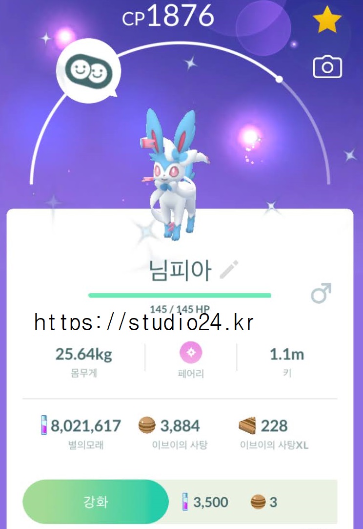 이제 포켓몬을 확인하면 아래와 같이 님피아 확정 진화 버튼이 확인됩니다.