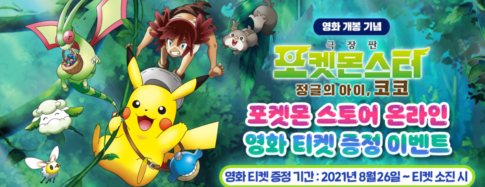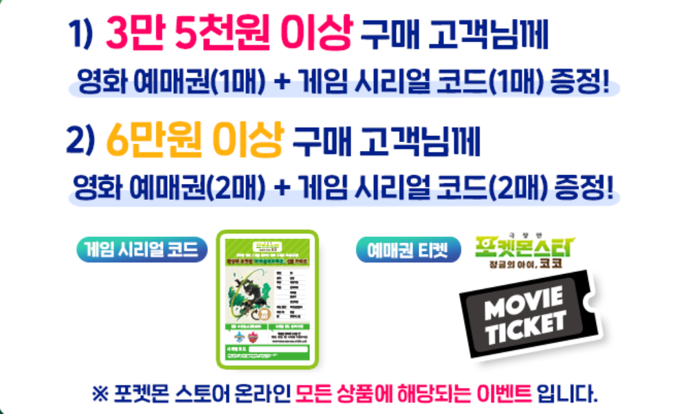 포켓몬 스토어 온라인에서 3만 5천원 이상 구매시, 영화 예매권 1매 + 게일 시리얼 코드 1매 증정