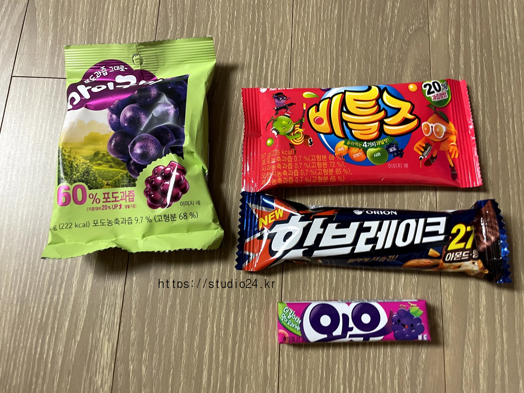 초코송이, 고래밥, 마이구미 포도, 아이셔츄잉 청사과