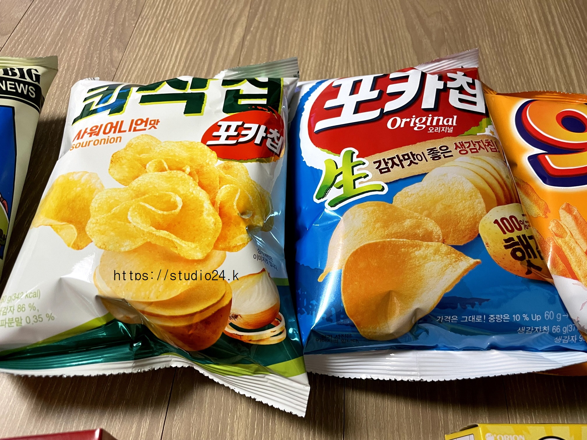 꼬북칩 콘스프, 꼬북칩 초코, 오감자 그라탕, 콰삭칩 샤워어니언,  포카칩 오리지널